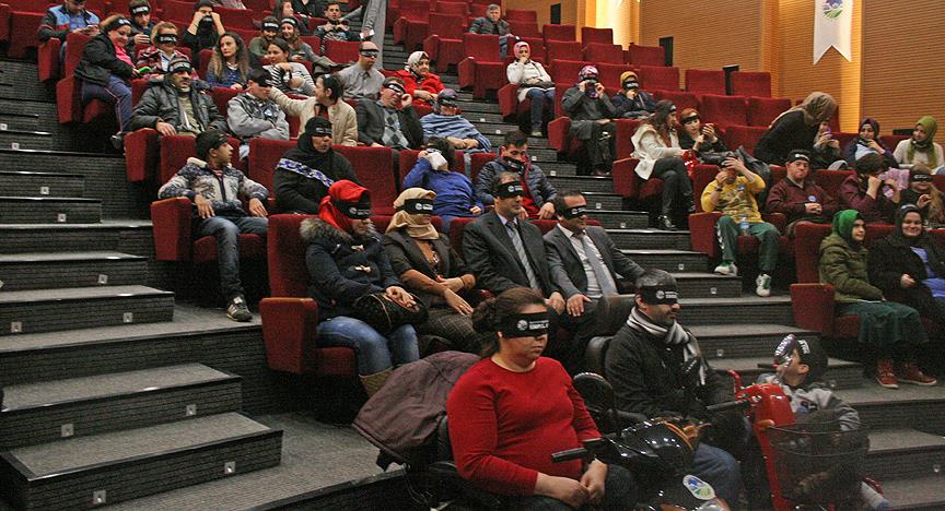 Beyaz Baston Körler Haftası nedeniyle SGM'de düzenlenen etkinlikte, görme engelliler sesli betimlenen "Unutursam Fısılda" filmini izledi.