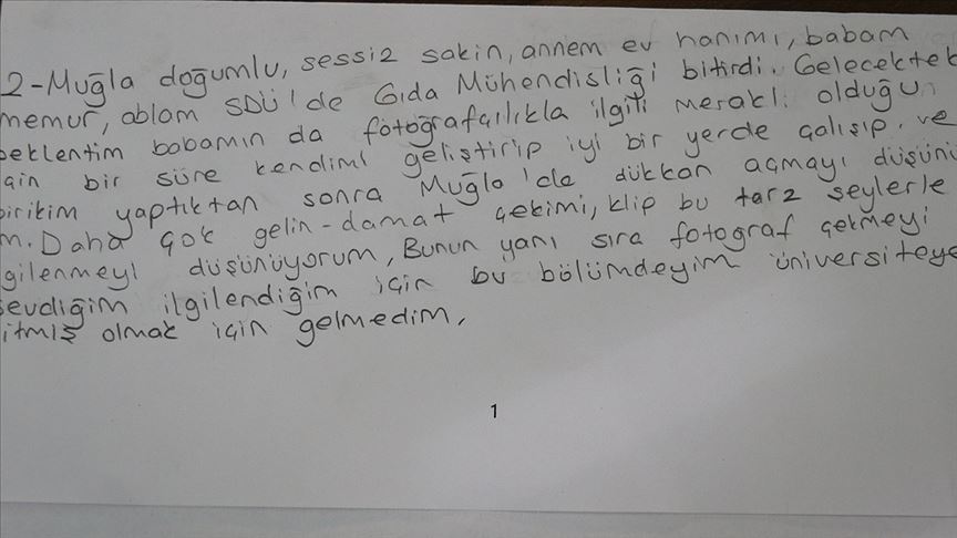 Güleda Cankel'in, fotoğrafçılık bölümünü tercih etmesindeki nedeni ve gelecekten beklentilerini yazdığı notta şu ifadeler yer aldı: