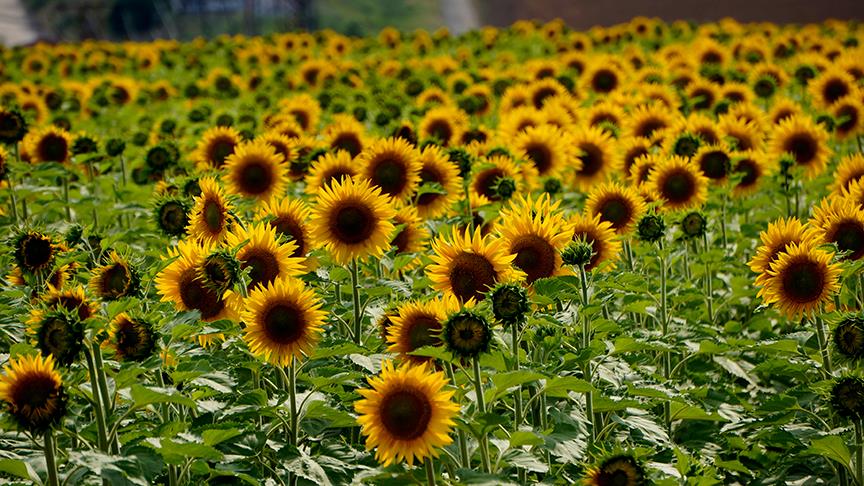 Bazı bölgelerde "günebakan", Trakya'da da "göndöndü" diye de anılan ayçiçeğinin toprağın sürülmesi sonrası organik dengeyi sağlamak amacıyla gübrelenmesinin ardından nisan ayının ilk haftalarında toprağa bırakılan tohumları önce boy verdi, sonra da çiçek açtı.