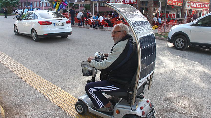 Bir arkadaşının tavsiyesiyle aracının arka bölümüne taktırdığı güneş panelleriyle akünün seyir halindeyken de dolduğunu anlatan Çerikan, "Aracımın aküsü 5-6 saatte güneş enerjisiyle tam doluluğa ulaşıyor. Özellikle Adana gibi sıcak illerde bu büyük avantaj. Eskinden engelli aracımla 20 kilometre gidebilirken şu anda paneller sayesinde 35 kilometre yol kat edebiliyorum." diye konuştu.