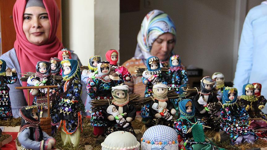 Balıkesir'in Sındırgı ilçesinde yaptıkları yöresel kıyafetli oyuncak bebekleri satışa sunan 4 kişilik "Altın Kızlar" grubu, hem ilçenin tanıtımına hem de aile bütçelerine katkı sağlıyor.