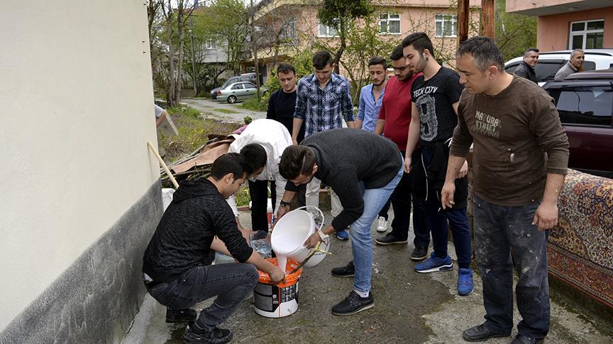 Zonguldak'ın Alaplı ilçesinde bir grup üniversite öğrencisi, harçlıklarıyla aldıkları boyalarla ihtiyaç sahibi bir ailenin evini boyadı.