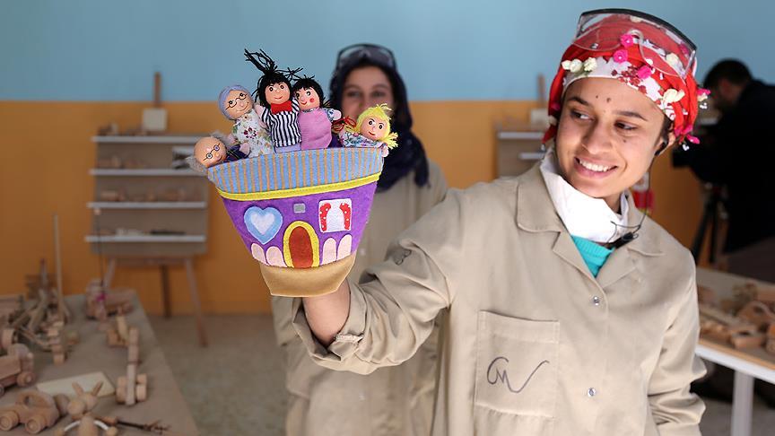 Harran Kaymakamlığı bünyesinde, 16-45 yaşlarındaki dezavantajlı kadınlar veya okula devam edemeyen gençler için hizmet veren aile destek merkezinde, Türk ve Suriyeli kadınlara 10 aydan bu yana keçe, ahşap oyuncak, halı ve seramik kursu veriliyor.