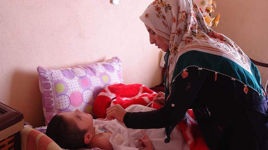 Hakkari'nin Şemdinli ilçesine bağlı Üzümkıran köyünde solunum yetmezliği nedeniyle 4 yıldır solunum cihazına bağlı yaşayan 6 yaşındaki Hüzeyfe Fırat'ın ablası Meryem, anne ve babası cihazı çalıştırmayı bilmediği için kardeşinin bakımıyla uğraşıyor.