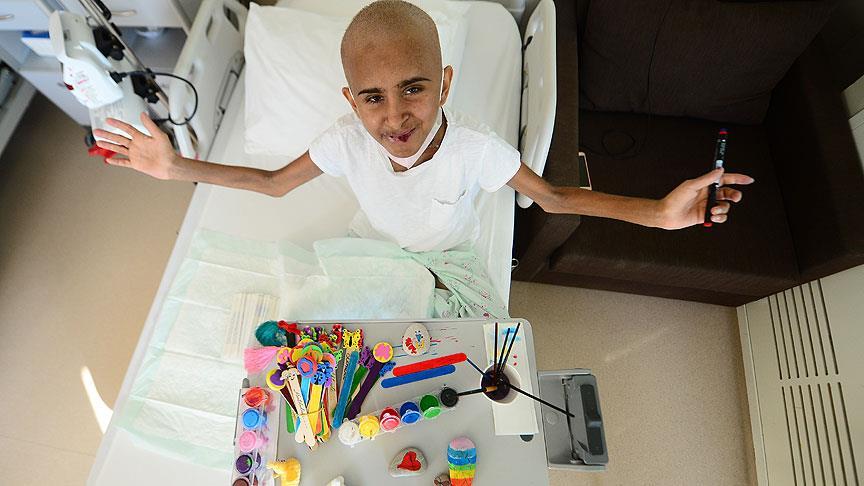 Antalya'da, dayısından ilik nakli yapılan 19 yaşındaki Mine Çevik, hayatının büyük bir bölümünü geçirdiği hastane odasında taşa resmettiği hayalleriyle mutlu oluyor.