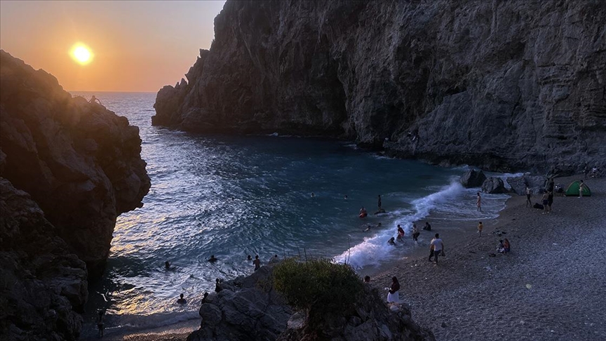 Sıcaktan bunalanların denizde yüzerek serinlediği koyda, bazı ziyaretçiler balık tutup piknik yaparak vakit geçirdi.