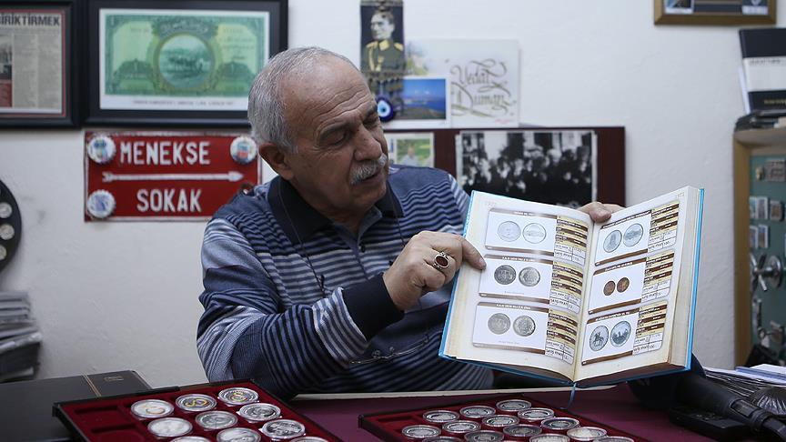 Vedat Duman, AA muhabirine koleksiyonunu yaptığı hatıra paraların 1970 yılında Darphane ve Damga Matbaası Genel Müdürlüğü tarafından basılmaya başladığını söyledi.