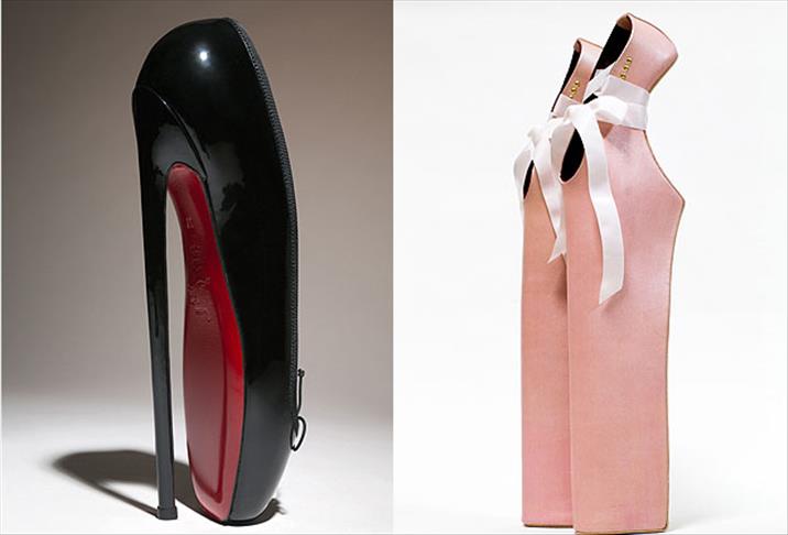"Fetiş balerin" adlı Christian Louboutin imzalı ayakkabı yaklaşık 25 santimetre uzunluğundaki topuğu ve kırmızı tabanıyla beğeni topluyor.
