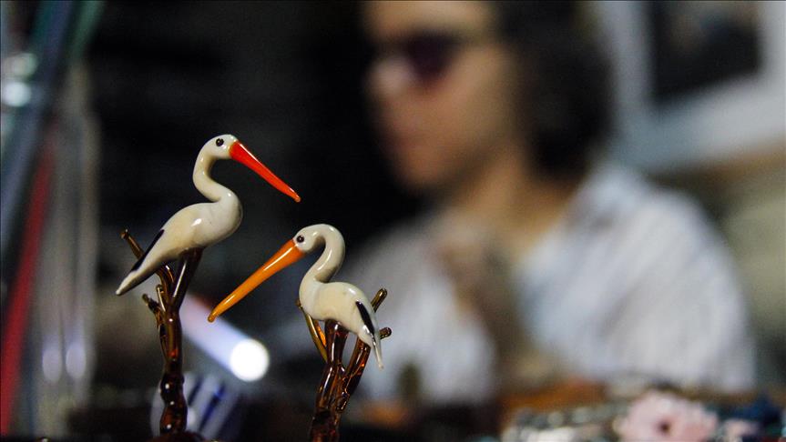 Osmanlı devletine bir dönem başkentlik yapan Bursa'daki tarihi Balibey Hanı'nda yer alan atölyesinde, bin 200 derecede erittiği cama şekil veren Ümmihan Ağırman, özellikle leylek, kuğu, ceylan, fil, ahtapot, deniz yıldızı gibi canlıların küçük figürlerini üretiyor.