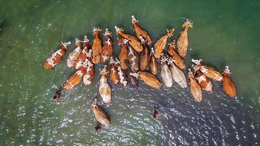 Arkadaşları ile gün boyu sahilde hayvanlarını göle sokarak serinlettiklerini ve temizlediklerini anlatan Ballık, "Hayvanlar balçıkta otladığında her tarafları çamur oluyor. Biz de onları göle sokup hem temizliyoruz hem de hep birlikte serinliyoruz. Bizim için de çok keyifli oluyor." dedi.