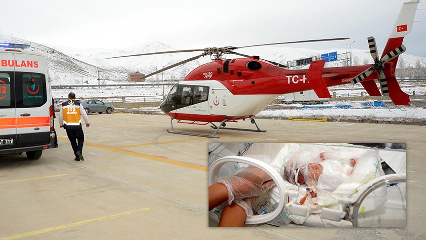 Sağlık Bakanlığının helikopter ambulansı ile Van'a sevk edilen bebek, Yüzüncü Yıl Üniversitesi Dursun Odabaş Tıp Merkezi'nde hayata tutundu.