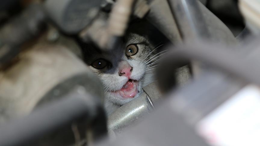Yavru kedinin motor bölümüne girdiği 5'inci aracın sahibine ulaşılamayınca yol yardım ekipleri ve vatandaşlar, kediyi kurtarmaktan vazgeçti ve olay yerinden ayrıldı.