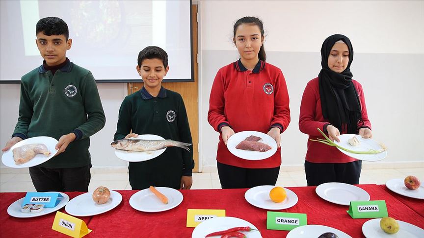 Hatay'ın Reyhanlı ilçesindeki Yatılı Bölge Ortaokulunun Müdürü Kenan Gül, AA muhabirine yaptığı açıklamada, öğrencilerine İngilizceyi görsel ve uygulamalı olarak öğrettiklerini söyledi.