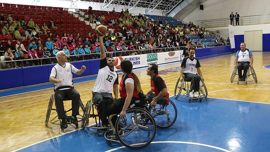3 Aralık Engelliler Günü etkinlikleri kapsamında Edip Buran Spor Salonu'nda gerçekleşen müsabakada, tekerlekli sandalyeye oturarak basketbol oynamaya çalışan iş adamları, zor anlar yaşadı. İlginç görüntülerin yaşandığı basketbol maçında engelli sporcular, iş adamlarını 5-0 yendi.