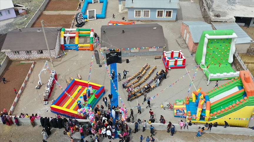 Festival kapsamında köy okulunun bahçesine şişme oyun parkı kuruldu.
