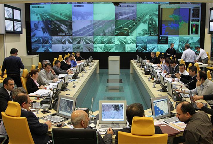 Afet Koordinasyon Merkezi'nde (AKOM) görev yapan ekipler, belirli bölgelere yerleştirilen 425 kamerayla kenti izleyerek olumsuz durumları tespit ediyor. Görevliler, trafik yoğunluğu ve kar yağışının yaşandığı yerlerde, müdahale gereken durumlarda bölgedeki ekipleri uyarıyor.