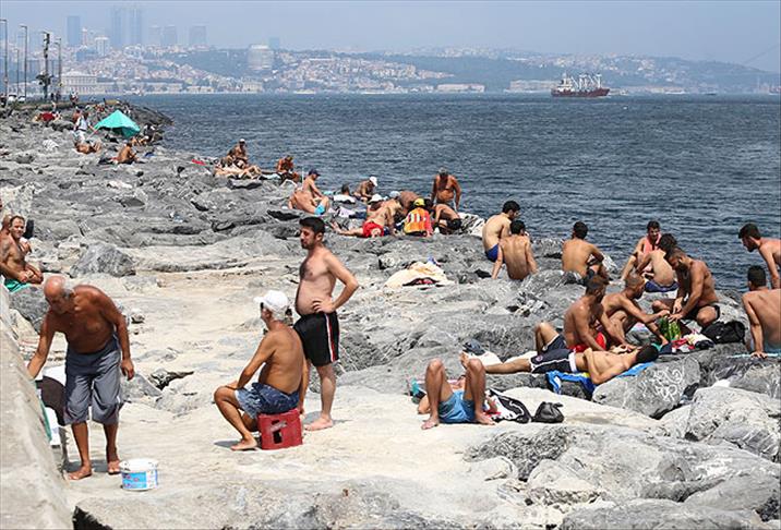Sıcaklığın yüksek nem nedeniyle 3 ila 5 derece arasında daha fazla hissedildiği kentte vatandaşlar, serinlemek için gittikleri sahillerde yoğunluk oluşturdu.