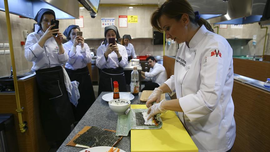 "TRT'de o zaman 'Saraydaki mücevher' diye başlamış bir dizide, oradaki mutfağa bir ilgim oluşmuştu. Çocuklarım okula başladığında meslek edindirme kurslarına başladım. Kore Büyükelçiliğinin Kültür Merkezi'nde ücretsiz yemek kursları verildiğini söylediler. Ben de meslek edindirme ile beraber oraya da başladım. Kore yemeklerine zaten ilgim vardı, sevgi duyuyordum ama nasıl yapılacağını bilmiyordum. Gittim, orada hocalarımız çok güzel ilgilendiler. Yaklaşık 5 senedir Kore mutfağıyla beraber Türk mutfağını da devam ettirip, aşçılık belgemi, usta öğreticilik ve ustalık belgelerimin hepsini aldım."