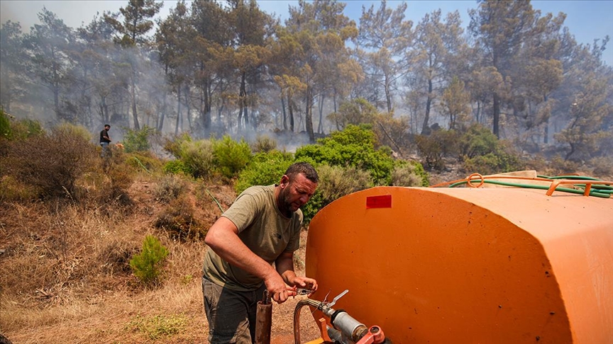 "Vatanımız, doğamız, canımız, malımız gitmesin diye mücadele ediyoruz. Bu orman hepimizin. Buraya bir damla dahi olsa su taşırsak bu bizim yararımıza, memleketimizin yararına. Canla başla çalışıyoruz. Traktörümle, tankerimle, vatandaşımızla burada hep birlikte el ele verdik, mücadele vermeye devam ediyoruz."