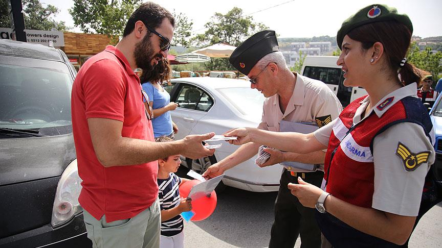 Denetimler sırasında, "Babalar Günü" nedeniyle özellikle baba olan sürücü ve yolculara Jandarma Teşkilatı'nın 177'nci yılı anısına şapka, anahtarlık, yapboz, magnet, oto kokusu ve kitap ayracı gibi çeşitli hediyeler verildi.