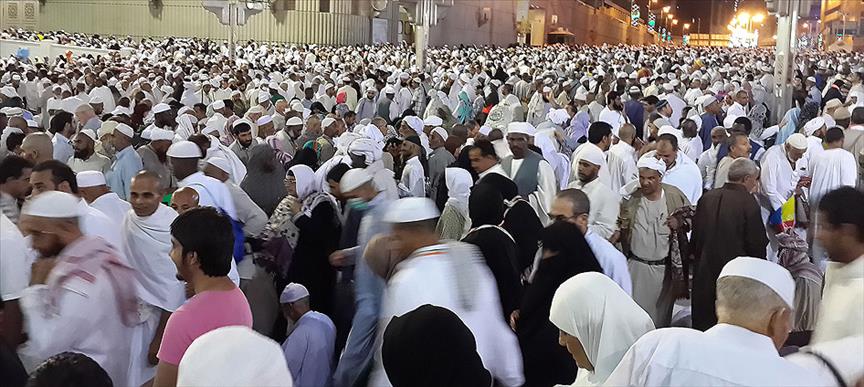 Hacı adayları, araçlardan indikten sonra Kabe'ye yürüyerek ulaşabiliyor. Kabe'nin iç kısmı ezandan en az iki saat önce dolduğu için gelenler namazı etraftaki alanda kılıyor. Kabe'nin çevresinde şimdiden namaz saatlerinde bütün sokaklar doluyor. Namazın ardandan da yine büyük yoğunluk yaşanıyor.