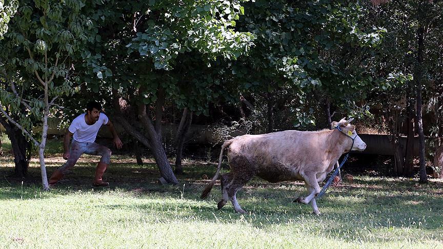 Dikici, basın mensuplarına yaptığı açıklamada, düveyi 4 bin 500 liraya satın aldığını belirterek, "Sabahtan beri hayvanın peşindeyiz. Kaçarken oğlumu da devirdi, iyi ki zarar vermedi. İlk kez düve kesecektik, tövbe ettim. Bir daha sadece koyun keserim." dedi.