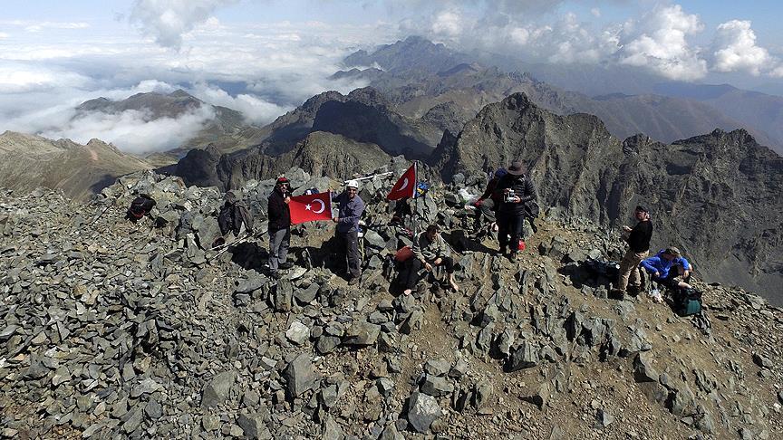 Zirveye ulaşan dağcılar, buradaki yaklaşık 30 dakikalık ziyaretlerinde Türk bayrağı ile hatıra fotoğrafı çektirip, anı defterini imzaladıktan sonra yeniden dönüş yoluna geçiyor.
