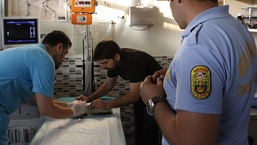 Sıkıştığı yerden kurtarılan ve uçamadığı görülen kuş, özel bir hayvan hastanesine götürüldü.