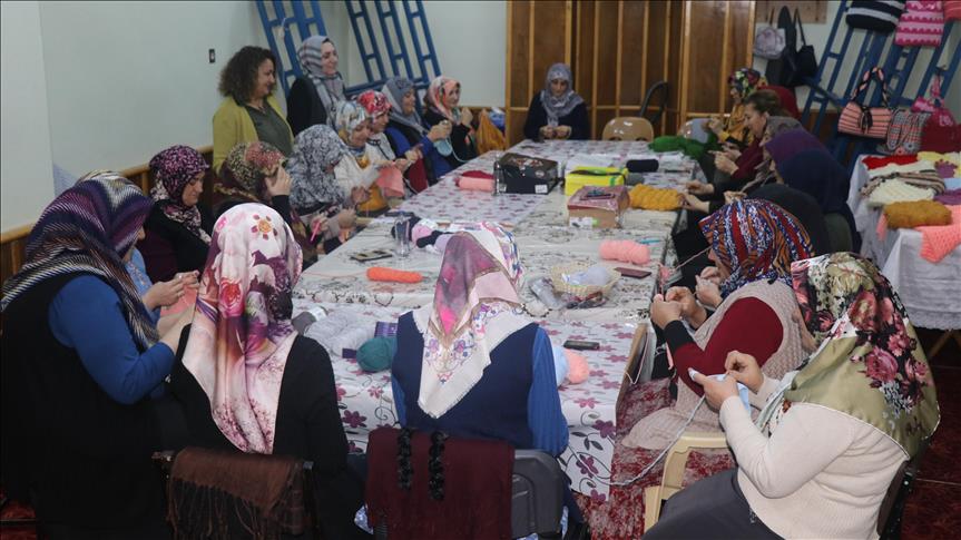 Böylece hastalıklarını bir nebze olsun unutan kadınlar, hem günlük 25 lira kazanıp aile bütçesine katkı sağlıyor hem de arkadaşları ile sohbet ederek moral buluyor.