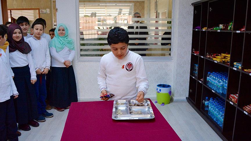 Öğrencilerin kantinden alışveriş yapmalarına eşlik eden ve gıda ürünü alarak parasını tabldot tabağından yapılan kasaya bırakan Şentürk, 15 Temmuz şehidi Ömer Halisdemir'in adının yaşatıldığı bir okulda böyle örnek bir uygulamadan dolayı büyük mutluluk duyduğunu söyledi.