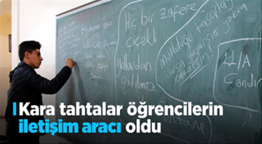 Diyarbakır'daki bir lisede öğrenciler, duygu ve düşüncelerini, önerileri ile çeşitli konulardaki beklentilerini, koridorlara ve bahçeye asılan kara tahtalara yazıyor.