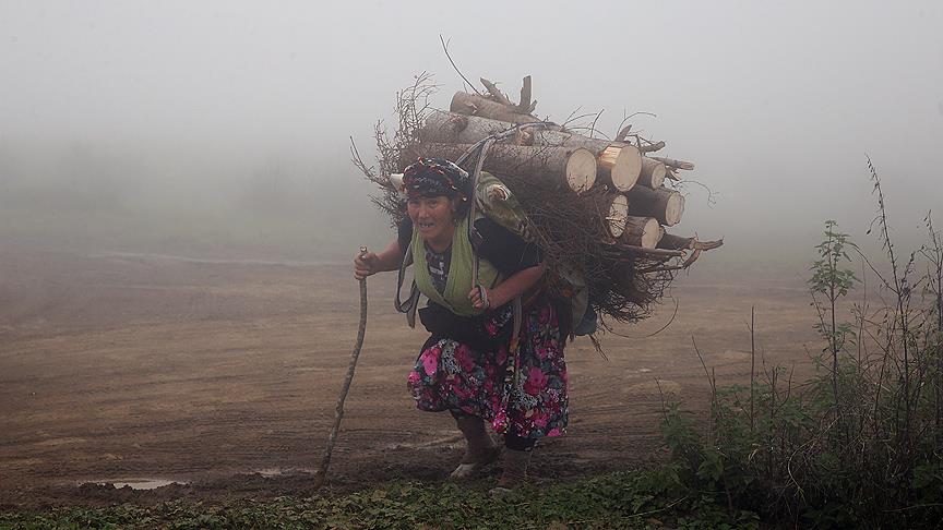 Karadenizli kadın çiftçinin yorucu mesaisi