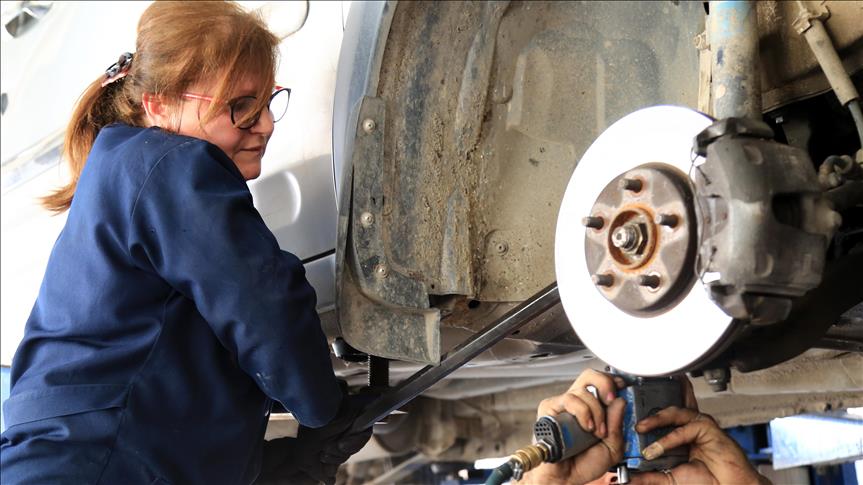 Mersin'de uzun yıllar tekstil sektöründe yöneticilik yaptıktan sonra emekli olan ancak evde oturmak yerine üretime katkı sunmak için yeniden çalışmak isteyen 55 yaşındaki Güler Gülser, çırak bulamayan oto tamircisi kardeşinin yanında çıraklık yapıyor.