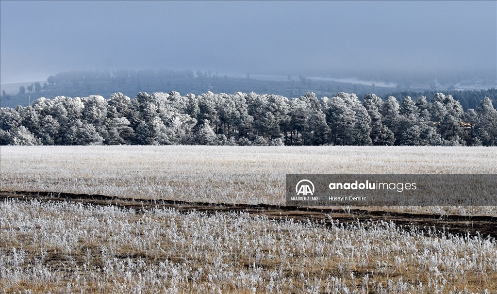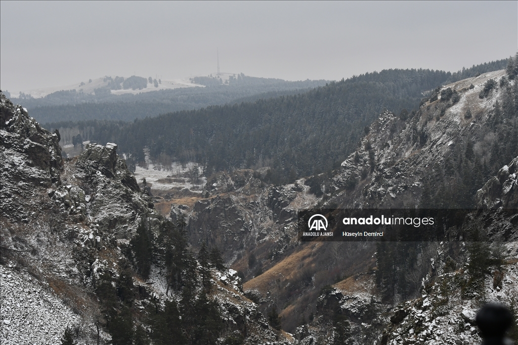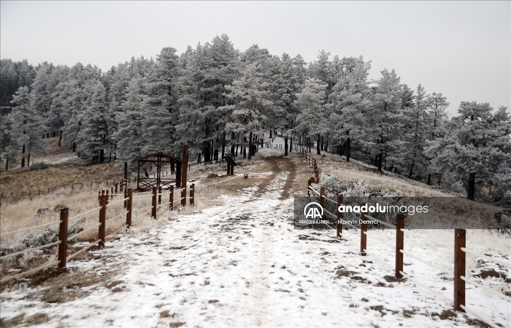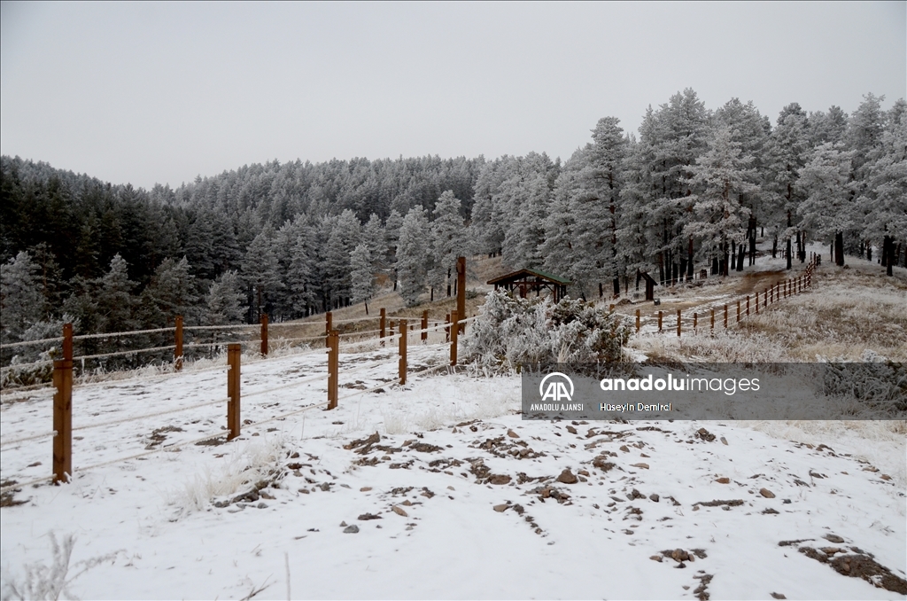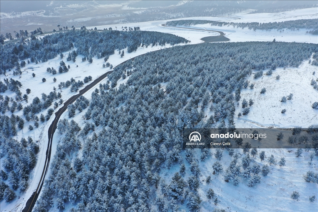 Boz ayı, vaşak, kurt, tilki başta olmak üzere birçok yaban hayvanına doğal yaşam alanı sunan sarıçam ormanlarını, önceki günlerde etkili olan karla beyaz örtü kapladı.