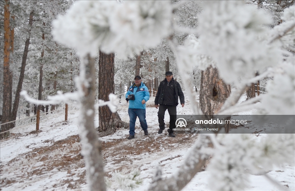 İlçede her mevsim güzel fotoğraflar çektiklerini ifade eden Özcan, "Son günlerde Sarıkamış'ta havaların soğuk ve sisli gitmesi nedeniyle ormanda güzel görüntüler ortaya çıktı. Biz de arkadaşlarla gelerek bu anı ölümsüzleştirmek istedik." dedi.