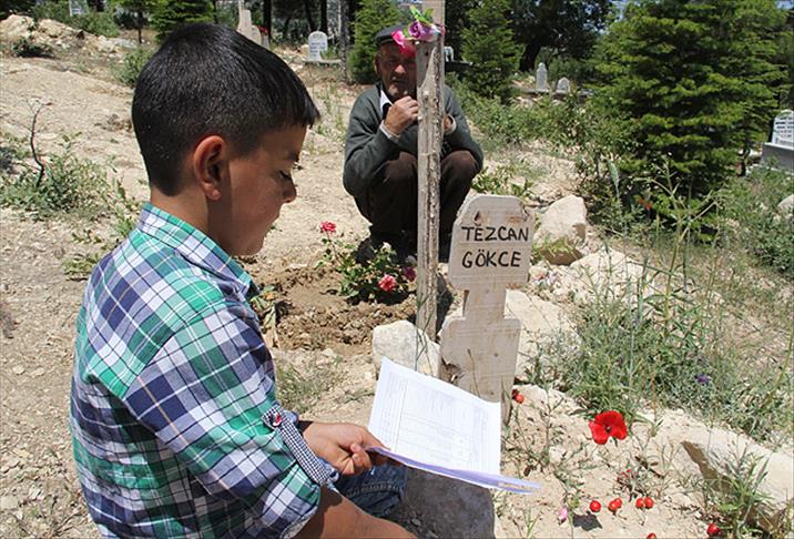 Karnesini alıp babasının mezarına gitti