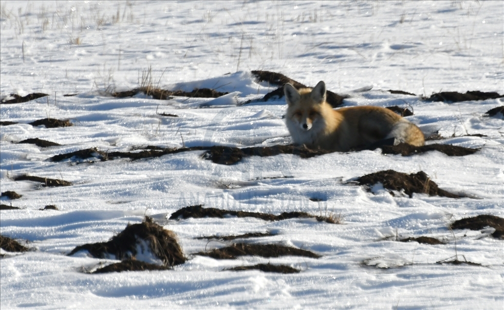 Kış mevsiminin çetin ve sert geçtiği Doğu Anadolu Bölgesi'nde etkisini sürdüren soğuk hava, yaban hayatını da olumsuz etkiliyor.