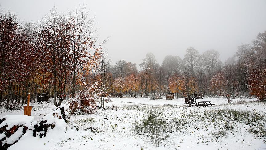 Kuzuyayla Tabiat Parkı'nda ise sonbaharın renk cümbüşü, karın beyazlığıyla buluşarak ziyaretçilerine eşsiz manzaralar sunuyor.