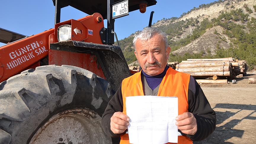 "Traktör kepçeyi 2013 yılında satın aldım. Kastamonu’nun Hanönü ilçesi Gökçeağaç Orman Deposunda 2,5 yıldır kullanıyorum, bu yıl oğluma devrettim. Gökçeağaç köyünde yaşıyorum. İstanbul’a hiç gitmedim. Traktör kepçeye 21 Ağustos 2014 tarihinde İstanbul-Edirne otobanı Mahmutlar gişelerinden HGS’yi ihlal ettiği gerekçesiyle 184,25 lira para cezası gelince şaşkınlık yaşadım. Bırakın traktörle Edirne’ye gitmeyi, İstanbul'a bile gitmedim. Bu traktör kepçeyle şehir merkezine bile inmedim, sadece yakıt almaya benzinliğe kadar gidiyorum."