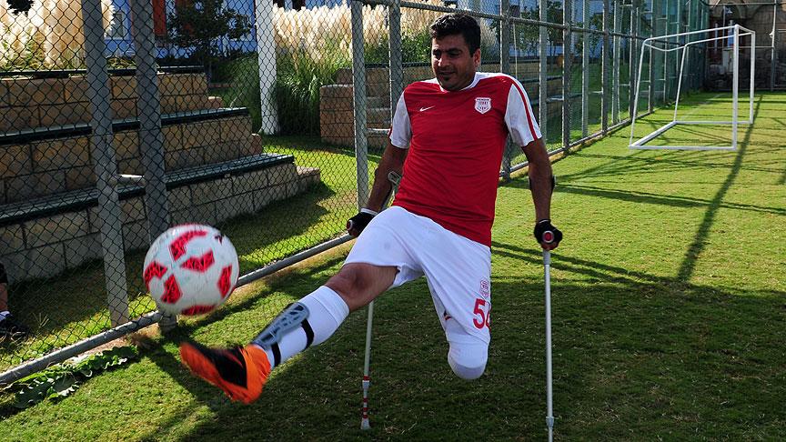 Trafik kazası sonucu bir bacağını kaybeden Mahmut Kaya, ampute futbol oynayarak hayata tutunmaya çalışıyor.