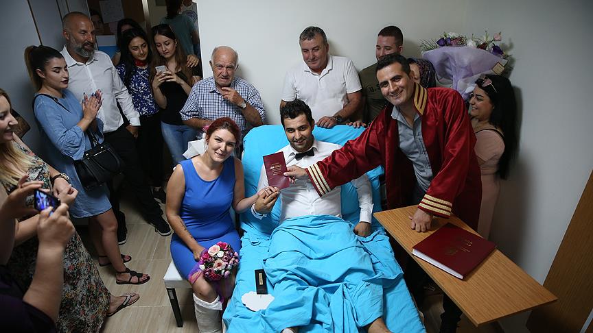 Bunun üzerine yakınlarını hastane odasına davet eden çiftin nikahı burada kıyıldı. Nikah cüzdanını geline veren memur, genç çifte ömür boyu mutluluk diledi.