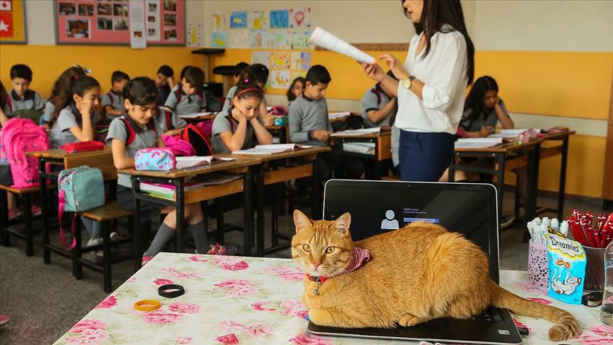 İzmir'de öğrencilerin sınıfta baktığı kedi Tombi, okulların tatile girmesinin ardından yurt dışına gideceği için "sınıf arkadaşlarına" veda etti.