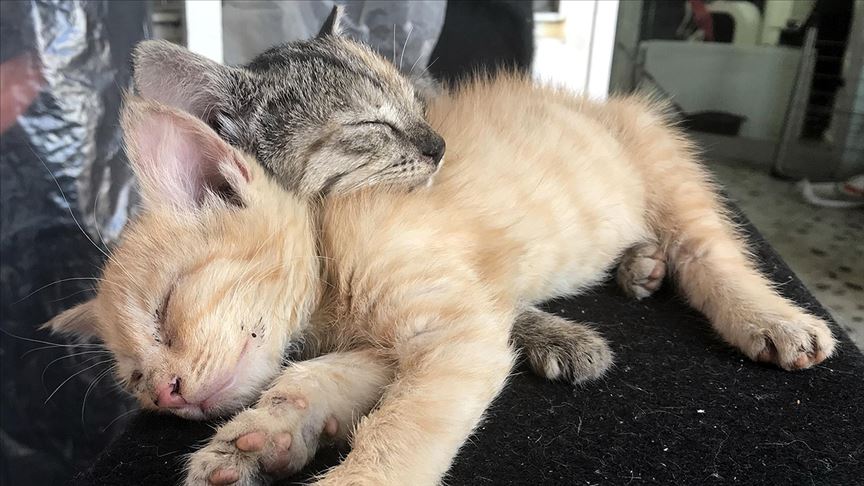 Özkan Kurban isimli çocuk, kedi yavrularının müzik eşliğindeki uyku keyfi için, "Çok güzel uyuyorlar, çok sevimliler." dedi.