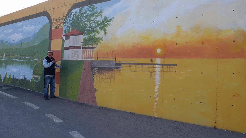 Ülkenin değişik kentlerindeki cadde, sokak ve trafo direklerini fırçası ile sanat eserine dönüştüren Salih Cengiz, Yalova'da yaklaşık 900 metrekarelik istinat duvarına, kentin tarihi ve doğal güzelliklerini aktardı.