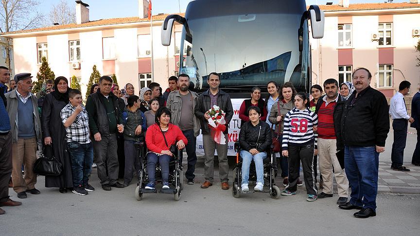 Cumhuriyet Meydanı'nda düzenlenen uğurlama töreninde konuşan Zile Kaymakamı Erdoğan Turan Ermiş, engellilere yönelik Çanakkale gezisinin ilçede ilk defa yapıldığını söyledi.