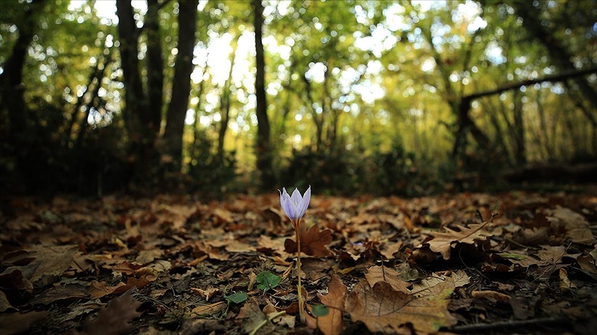 Ağaçlardan dökülen yaprakların toprağı kapattığı su basar ormanlarında, düşen yapraklar arasından çıkan çiçekler de manzaraya ayrı renk katıyor.