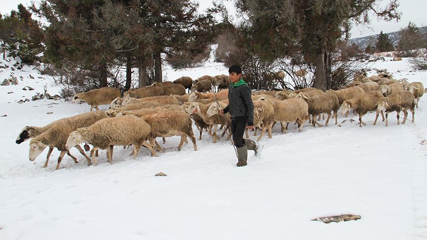 Konya'nın Beyşehir ilçesinde kışı dağdaki ağıllarında geçiren besiciler, koyunlarını yetiştirmek için zorlu kış şartlarıyla mücadele ediyor.