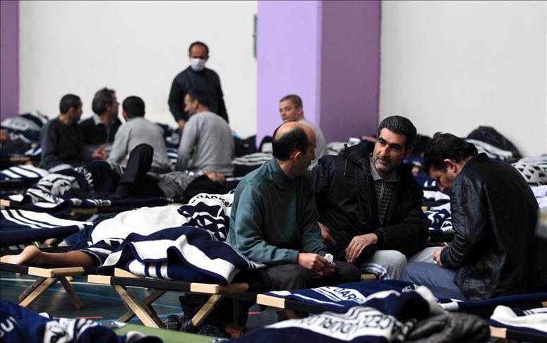 Metin Oktay Spor Salonu'nda kalan evsizler arasında Türk vatandaşlarının yanı sıra yabancı uyruklular da bulunuyor.