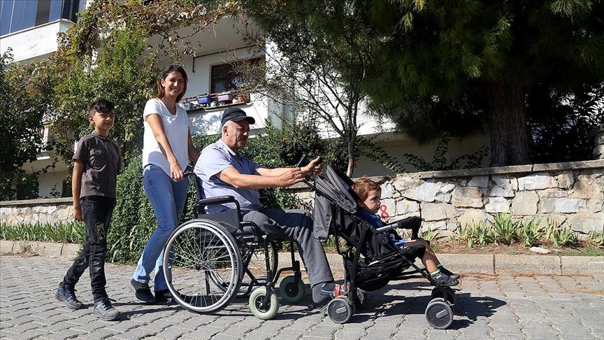 Çocuklarına ve babasına özenle bakan Karagöz, AA muhabirine, babasını durumundan dolayı tekerlekli sandalyeyle dışarı çıkarabildiğini söyledi.