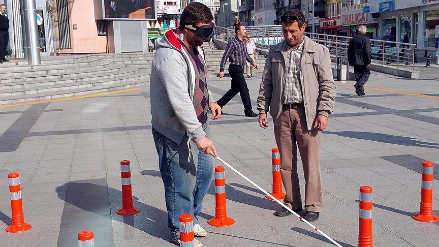 Etkinlikte Belsa Plaza önünde toplanan vatandaşlar, gözlerine beyaz bastonu simgeleyen bant takarak oluşturulan özel parkurda yürüdü. Ellerindeki beyaz bastonla engelli yolunu bulmak için gayret gösteren vatandaşlar, gözleri bağlıyken satranç da oynamaya çalıştı.